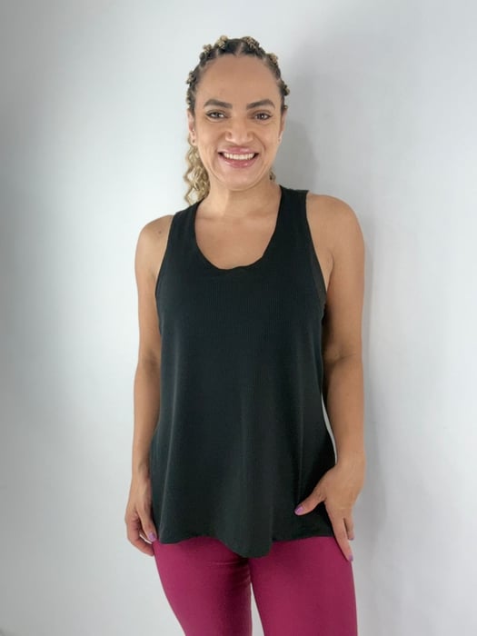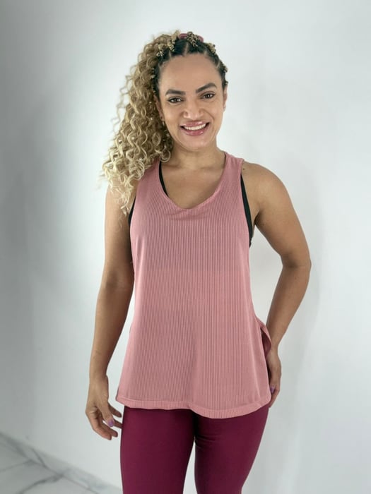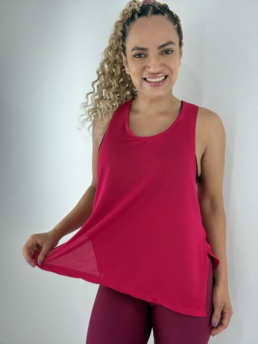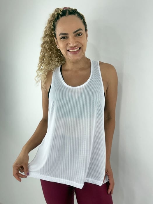 Regatão cavado dryfit com fendas laterais. Perfeito para quem gosta de um look soltinho e estiloso.