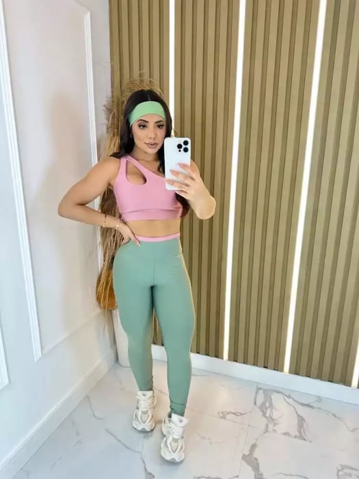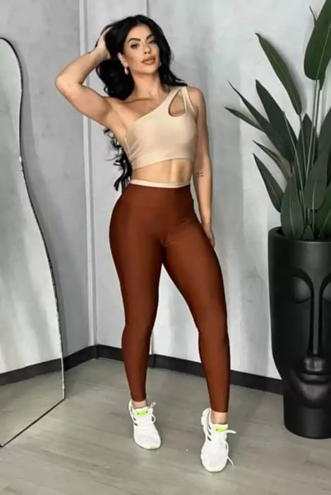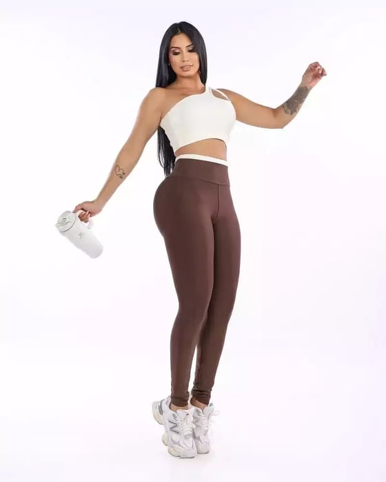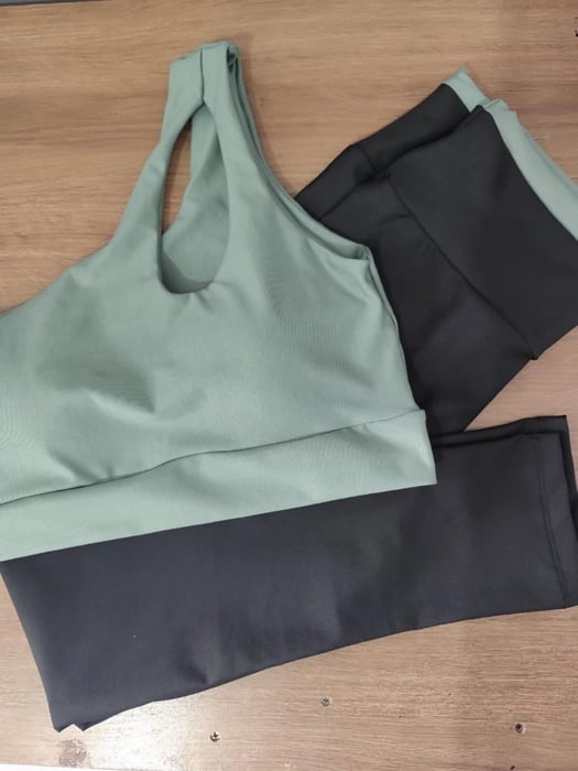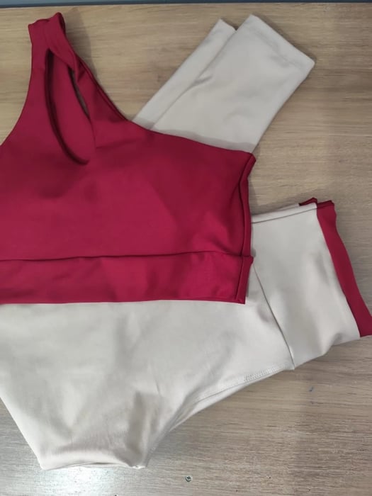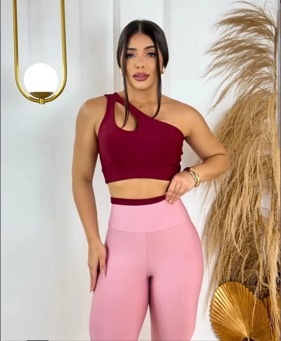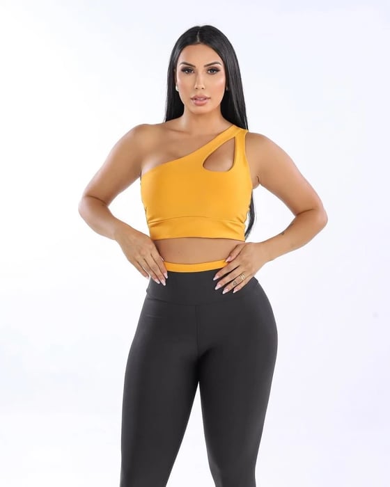Conjunto power de calça no tecido SUPLEX POWER, com alta resistêncai , possui top de um ombro só com bojo removível e detalhe gota com forro duplo.
