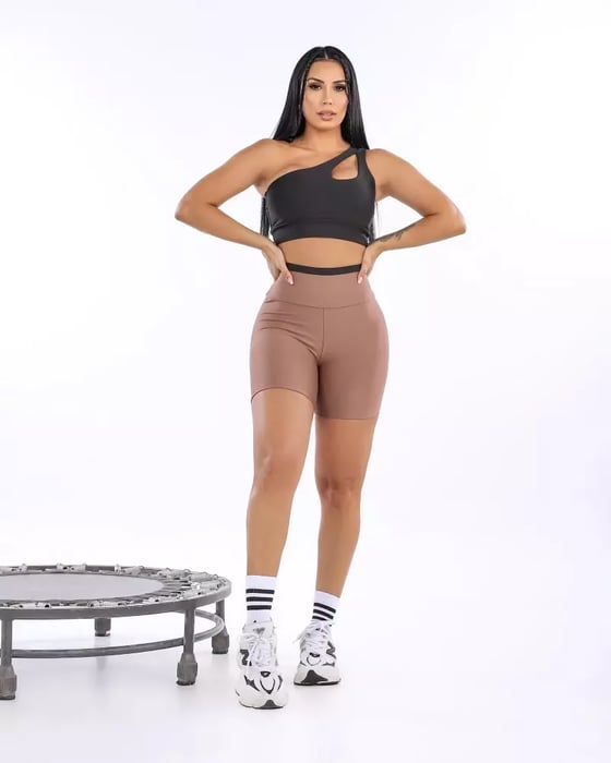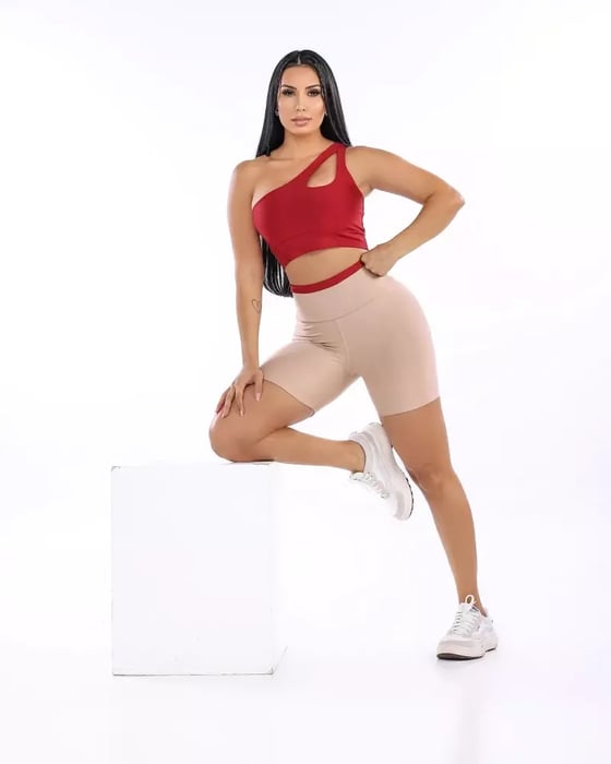 Conjunto power de short meia coxa no tecido SUPLEX POWER, com alta resistêncai , possui top de um ombro só com bojo removível e detalhe gota com forro duplo.
