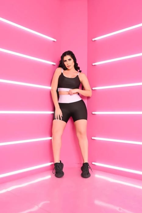 Conjunto bicolor power de SHORT no tecido SUPLEX POWER, com alta resistêncai , possui top com bojo removível.