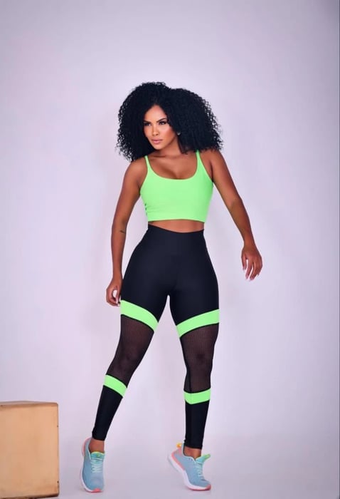Nosso Lançamento do Conjunto Power com detalhe arrastão na calça, vem com todo charme com o top cropped e bojo removivel.